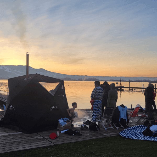 Im Vergleich zu traditionellen Saunen bietet die Zeltsauna einige entscheidende Vorteile: Sie ist leicht, kompakt und in wenigen Minuten auf- und abgebaut. Während fest installierte Saunen einen festen Standort und oft aufwendige Installationen erfordern, ist die Zeltsauna flexibel, einfach zu transportieren und platzsparend zu verstauen. Zudem brauchst du keine Baubewilligung, da sie als Fahrnisbaute gilt.
