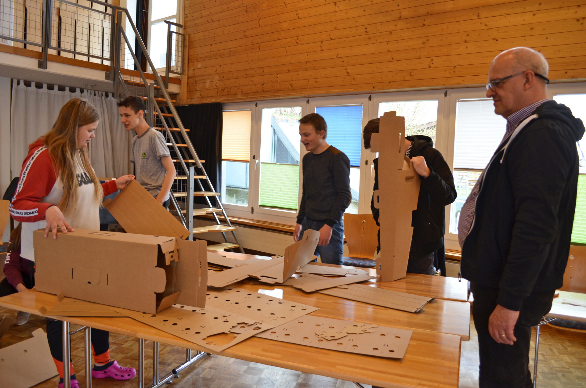 Jedes Team erhält von uns einen "Oeko-Bausatz" und baut sich daraus seinen stabilen Fussballkicker aus Karton. Logisches Denken und gutes Teamwork hilft Euch dabei, innert kürzester Zeit Euren Töggelikasten fertig zu stellen.
