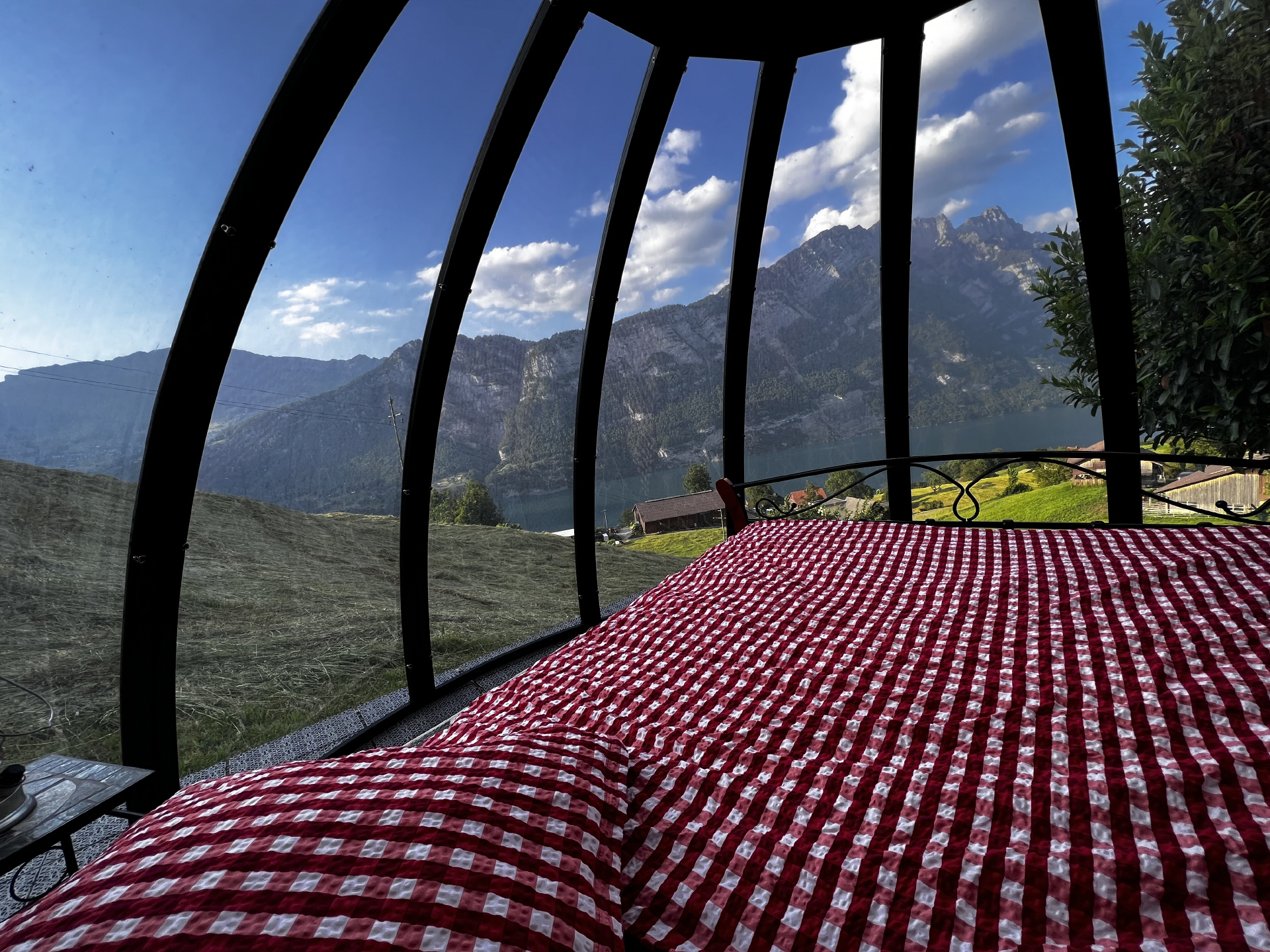 Die kuschlige Bubble-Suite liegt in Obstalden im idyllischen Weiler "Walenguflen" hoch über dem Walensee. Von hier aus haben Sie die verschiedensten Möglichkeiten für Aktivitäten rund um den See und in den Bergen.