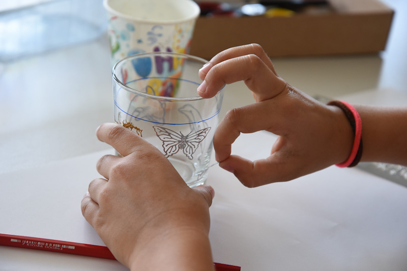 Sie arbeiten mit Glas und Farbe und werden dabei von den Glaskünstlern mit Rat und Tat unterstützt.