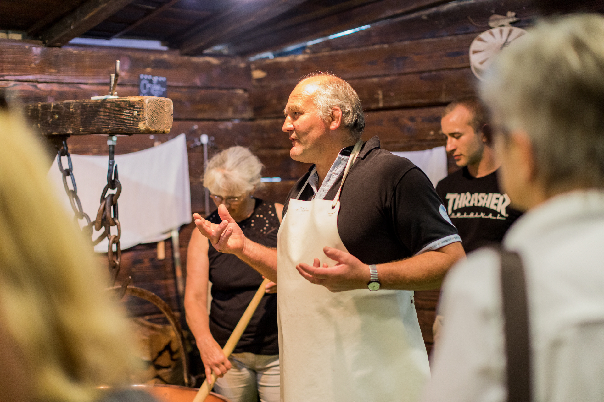 Bei einem 2-stünigen Rundgang in der Käserei erfahren Sie alles über die Milchverarbeitung. In der Alphütte stellen Sie anschliessend unter kundiger Leitung aus 80 Liter Heumilch 16 Bergmutschli her. Bei dieser Zeitreise von modern zu traditionell werden Sie staunen, wie die Käseproduktion sich gewandelt hat. Nach 4 Wochen Reifezeit sind die Mutschli reif zum Abholen oder Versand per Post
