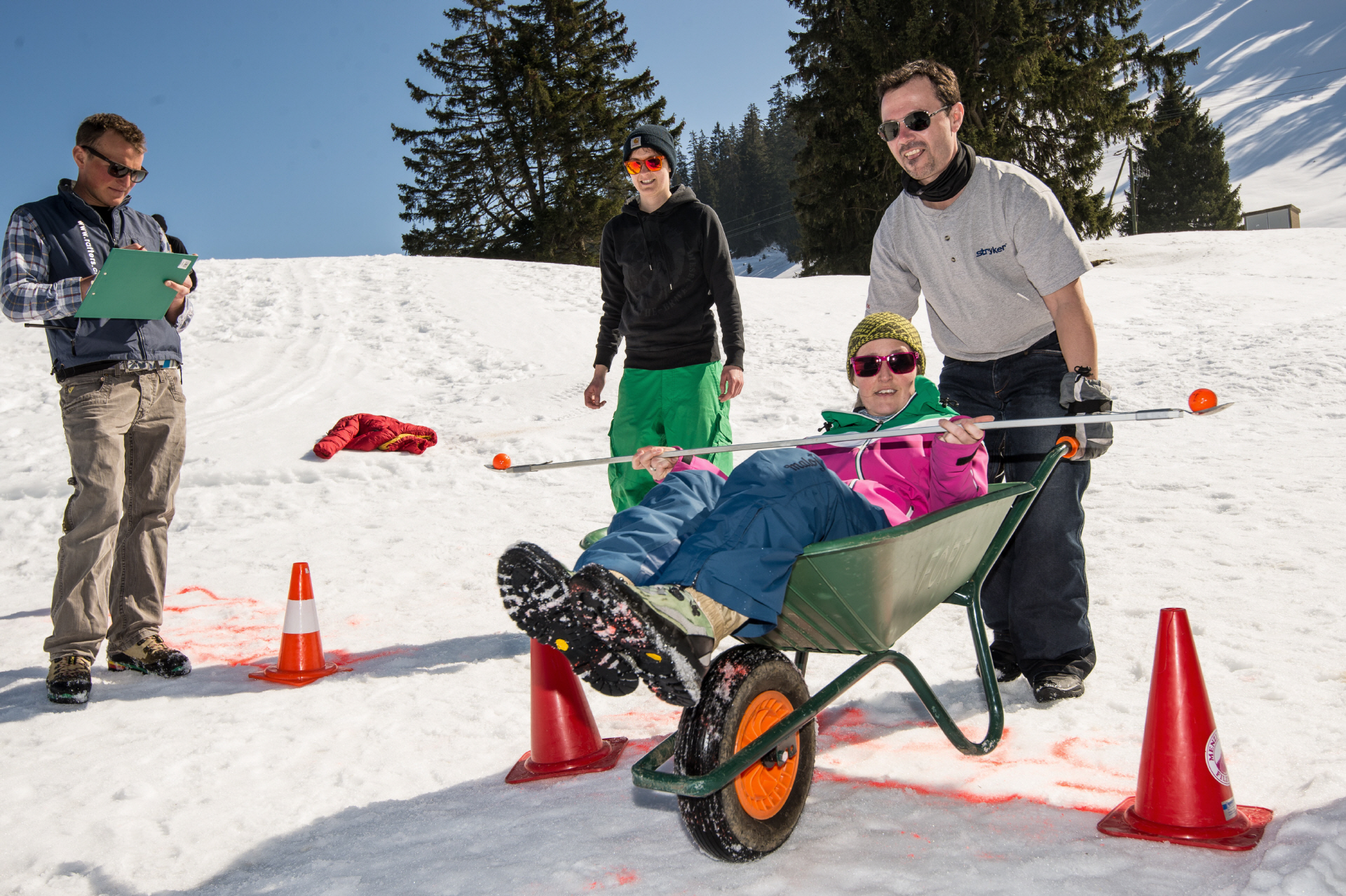 Die Teams meistert witzige Aktivitäten im Schnee. Sie messen sich beim Schneebrättli-Parcour, Wintergolf oder Schneefussball, bauen originelle Skulpturen aus Schnee und versucht sich mit Airboards und Skibockerl durch die Slalomstangen zu winden und möglichst viele Schneehühner zu fangen.